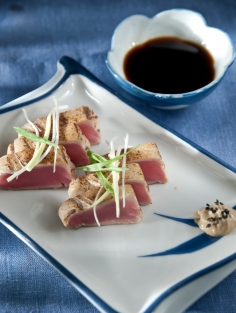 Трохи обсмажений тунець, подається з дайконом та гірчичним соусом.
