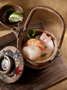 Суп з креветок "черний тигр", філе білої риби, морських гребенців, грибов шиітаке (подається в чайничку).