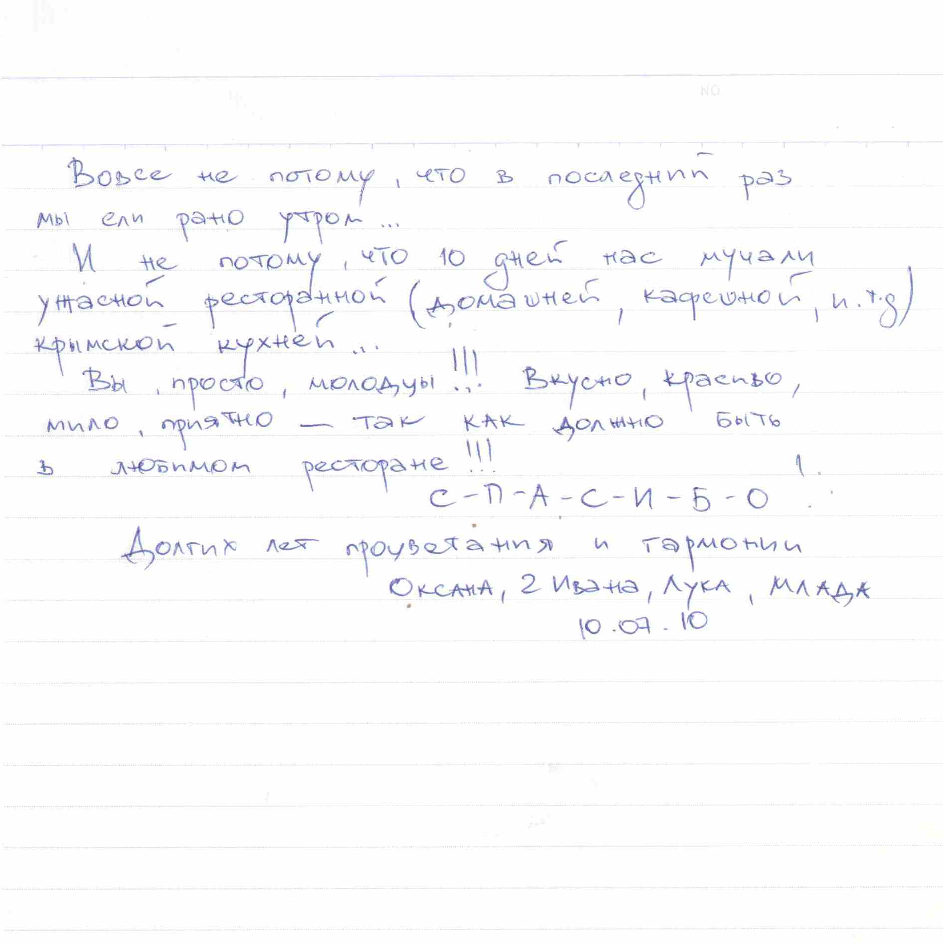 Вы, просто, молодцы!!! Вкусно, красиво, мило, приязно –так как долино бать в любимом ресторане! С-П-А-С-И-Б-О!
