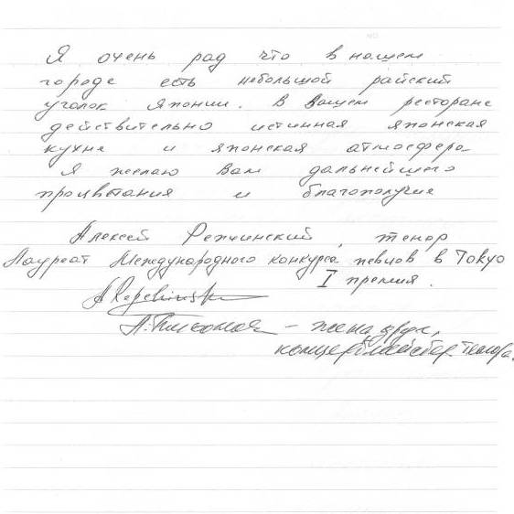 Комик-дуэт "Кролики"Я очень рад, что в нашем городе есть небольшой райский уголок Японии. В вашем ресторане действительно истинная японская кухня и японская атмосфера.