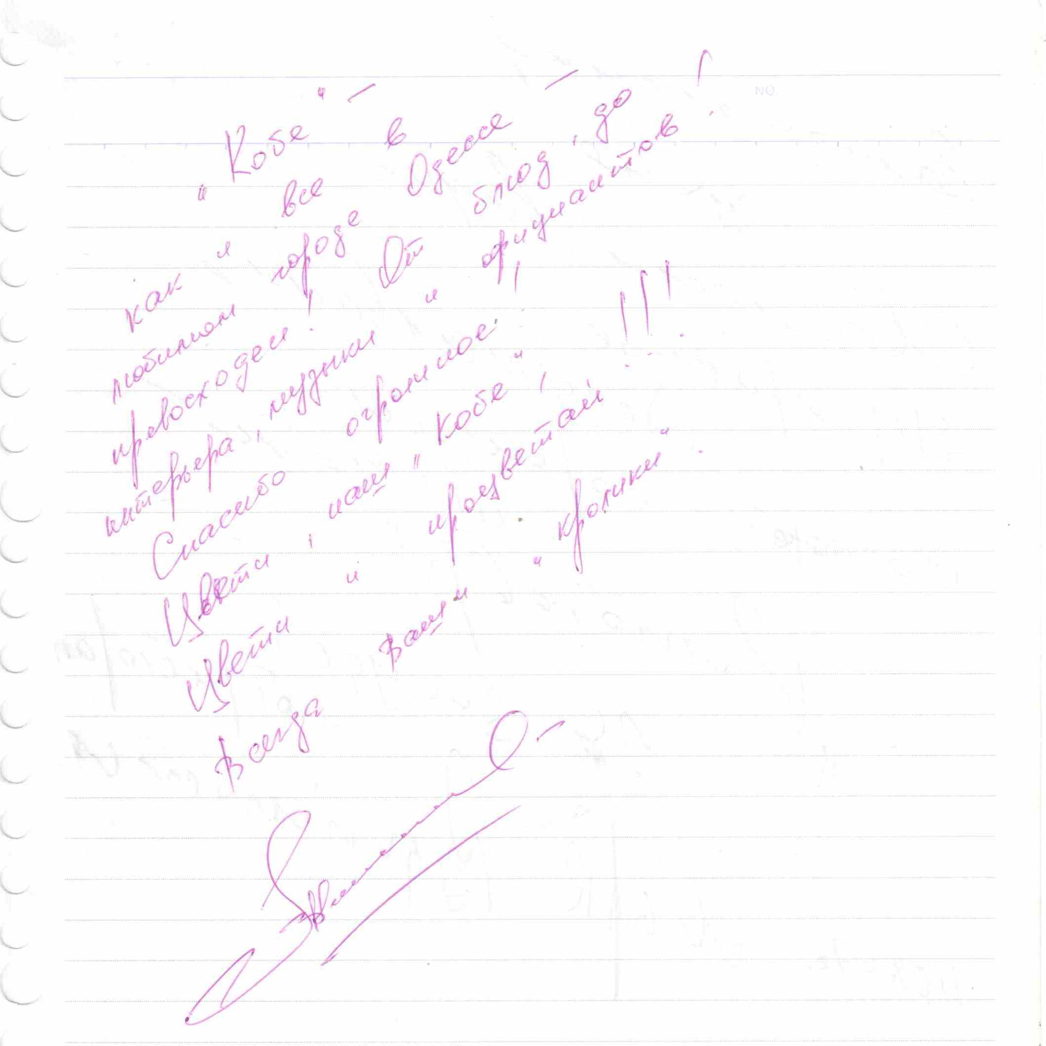 «Кобе» - Как и все в любимом городе Одессе – превосходен! От блюд, до интерьера, музыки и официантов! Спасибо огромное!